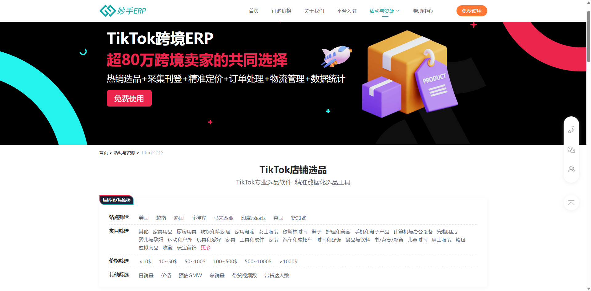 妙手ERP,80万+跨境电商卖家的共同选择,致力于为Tik Tok虾皮店铺跨境电商平台卖家提供热销选品、采集刊登、精准定价、订单处理、物流管理、数据统计、财务等一体化服务。