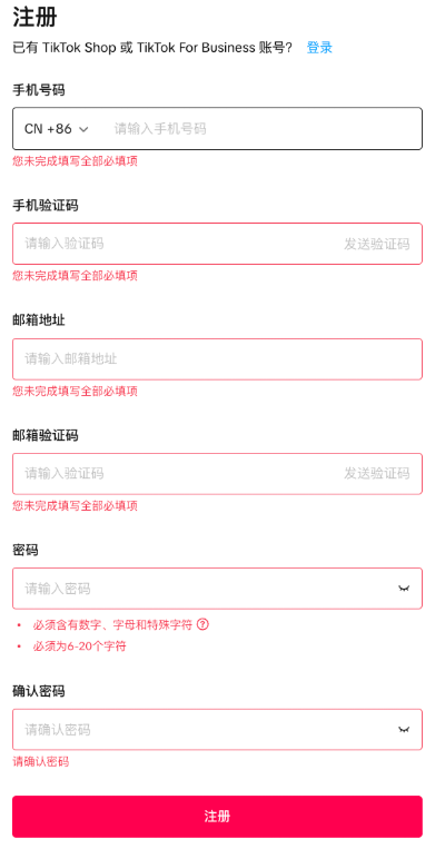 ·店铺注册成功后,需要注册与TikTok Shop命名一致的TikTok账号进行绑定。